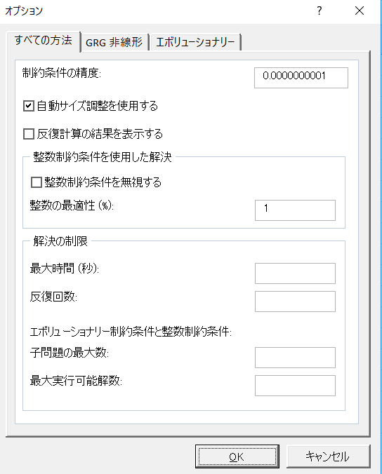 ・オプションを選択⇒制限条件の精度精度に例えば「1e-10」を代入⇒「OK」