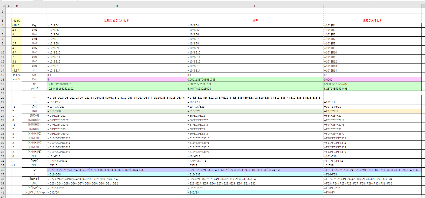 ・制約条件:R = 0 および[Ni][OH]^2/Ksp = 1