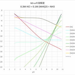 pHの異なる溶液に対する様々な金属水酸化物の溶解度を求め、pHと溶解度の関係を調べます。 より具体的には、2価の金属(M2+)あるいは3価の金属(M3+)について、溶解度積(Ksp)および水酸化物錯体の生成定数(βn)の値から、pHと金属水酸化物の溶解度(S)の関係を計算で求めます ...