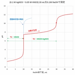 AgNO3とHNO3の混合溶液をNaOHで滴定する