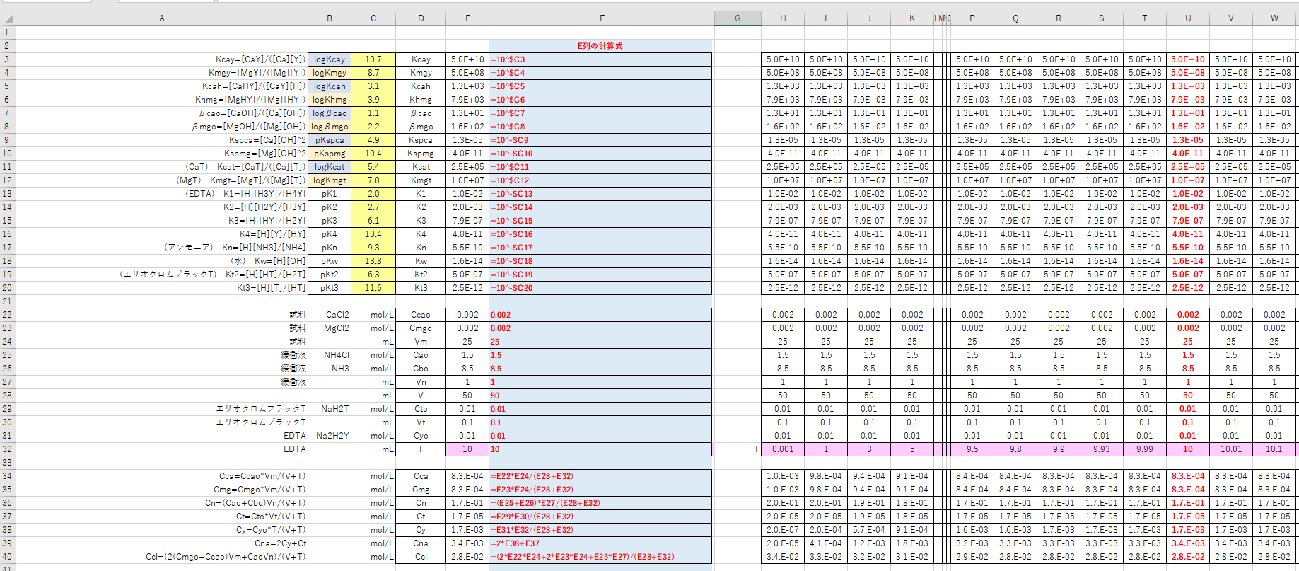 ・変数セル:pH, pY, pCa, pMg