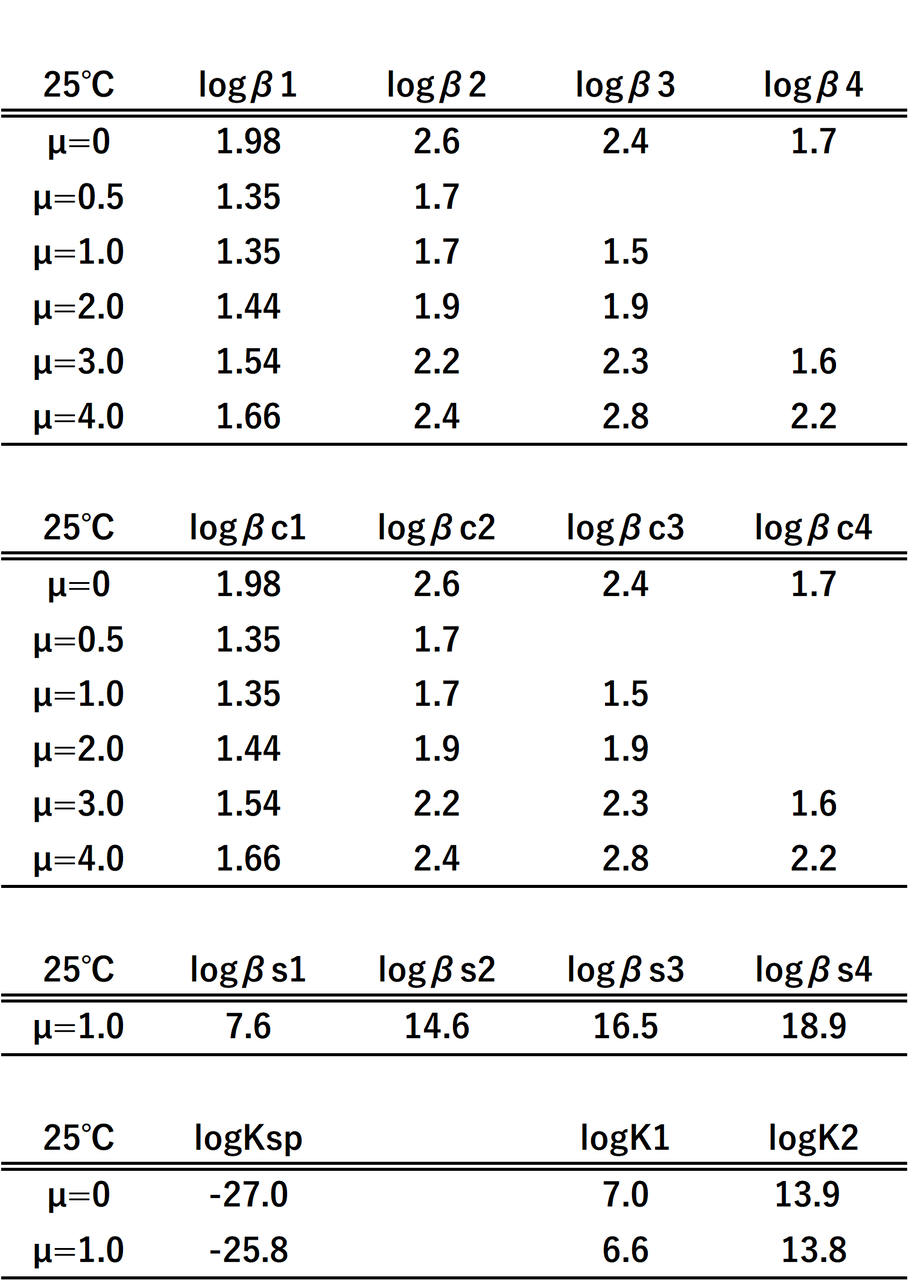 Stability Constants" (R. M. Smith and A. E. Martell)から得られたデータを用いました(図-1)。