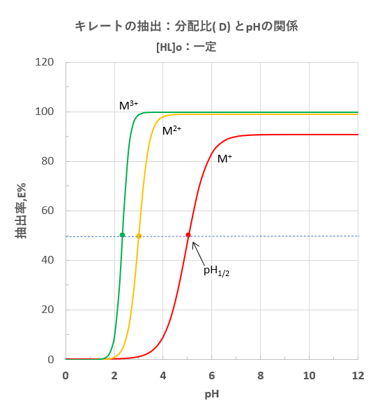 となります。pH1/2は金属イオンの抽出されやすさの目安となります(pH1/2が低いほど抽出されやすい)。