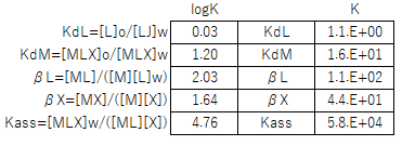 (*2) [MLX]o = KdMKassβL[M][X][L]w