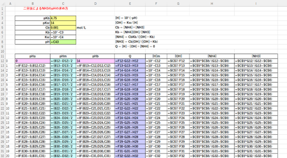 ①, ③式から、Kb=[NH4][OH]/[NH3], Cb=[NH3]+[NH4]