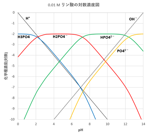 リン酸の対数濃度図の拡大図(図-4)において、