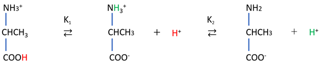 モノアミノ-モノカルボン酸の一種であるアラニンは次のように解離します。