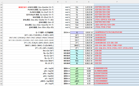 変数セル:pH, pAl, pPb, pZn, pY