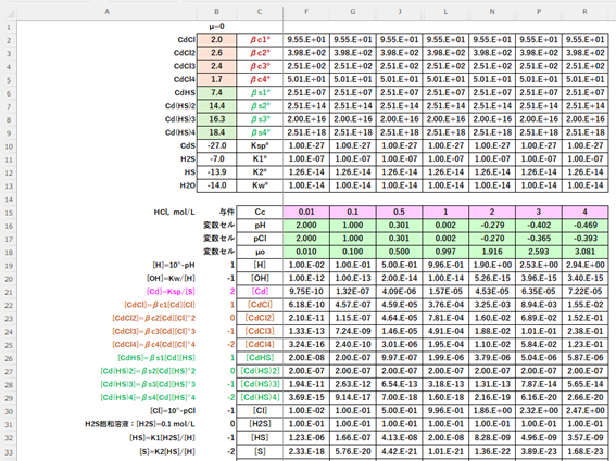 ・変数セル:pH, pCl μo