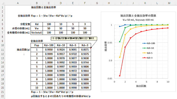 (なお、Kd=Dの場合、fo1は抽出率: E(%) = 100D/(D+Vw/Vo)に対応します。)