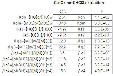 <<銅-オキシンキレートのクロロホルムの抽出平衡>>