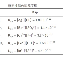 難溶性塩MaLbの溶解度積は、論文、教科書、辞典、データ集等の資料に記載されています。この溶解度積の値およびその他の平衡定数から、ある溶液条件における溶解度を求める方法を考えます(*2)。注(*2)溶解度積(Ksp)の値は沈殿の生成条件(結晶形等)の違いによって大きく ...