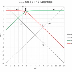 1価の弱酸-強塩基の塩、強酸-弱塩基の塩の水溶液について、そのpHの求め方を説明します。 <<弱酸-強塩基の塩>> 1価の弱酸(HA)のナトリウム塩(たとえば酢酸ナトリウム)の溶液を取りあげます。Cs mol/Lの塩(NaA)溶液のpHを求めます。弱酸の酸解離定数をKaとし、活量係数 ...
