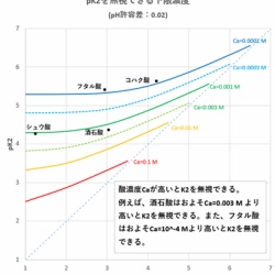 これまで数回にわたって1価の弱酸、弱塩基のpHの求め方について説明してきました。今回は多価の弱酸、弱塩基を取りあげます。 <<2価の弱酸のpH>> 2価の弱酸としては、炭酸、亜硫酸、硫化水素、シュウ酸、コハク酸、フタル酸、酒石酸などが挙げられます。 2 ...