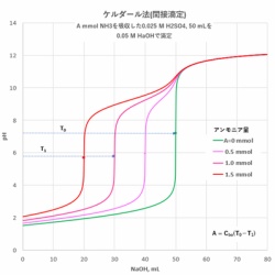 酸塩基滴定の代表的な応用例としてケルダール法があります。ケルダール法は有機窒素の最も一般的な定量法の一つです。これは、試料を熱濃硫酸中で分解して有機窒素をアンモニウムイオンに変換し、NaOHを加えてアンモニアとして蒸留して硫酸またはホウ酸に吸収し、間接的ある ...