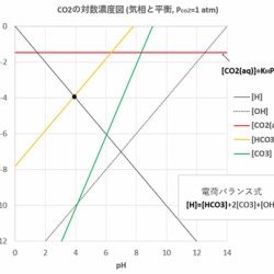 今回は気相と溶液でCO2の平衡が成立するとき、気相のCO2分圧の変化によって炭酸溶液のpHがどのようになるか調べます。 <CO2分圧とpHの関係> 前回(2024-02-25)説明した通り、気相と溶液の間でCO2の平衡が成立するとき、次のような関係が成立します。 [CO2(aq)] = KHP ...