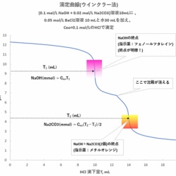 今回は沈殿反応を伴う酸塩基滴定について考えます。その一例として、ウインクラー法を取りあげます。この方法は、Na2CO3とNaOHの混合溶液をHClで滴定するとき、試料にBaCl2を加えNa2CO3をBaCO3として沈殿させ、残ったNaOHをHClで滴定するやりかたです。 <<ウインクラ ...