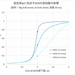 滴定を妨害する金属イオンが試料溶液中に含まれる場合、妨害の回避策として、pHの調節、金属イオンの分離(沈殿、イオン交換等)、別の選択的キレート試薬の使用などのやり方もありますが、簡便かつ汎用的なのはマスキング剤を使用する方法です。このとき、妨害イオンに対する ...