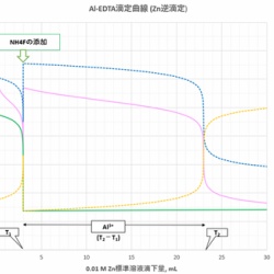 アルミニウムは、加水分解して多核錯体を作りやすくまたEDTAとの反応速度が遅いなど、EDTA滴定にはあまり適さない元素であり、EDTA滴定を用いるにあたってはいくつかの困難回避策を考える必要があります。今回は、標準Zn溶液による逆滴定およびフッ化物によるAlのマスキング ...