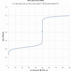酸化還元滴定でよく用いられる「セリウム(IV)標準溶液によるによる鉄(II)の滴定」を例として、当量点前、当量点、当量点後にケース分けして酸化還元滴定曲線を描く方法を説明します。 具体的には、濃度Cfo mol/Lの鉄(II)を含む1 mol/L硫酸溶液v mLを濃度Cco mol/Lのセリウ ...