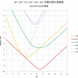 今回は、前回(2023-02-05)の続きで分属におけるNH4Clの効果について調べます。また属内分離について説明します。分属後の分離確認操作では、第3属の沈殿にNaOHとH2O2を加えて煮沸し、Al(OH)3はアルミン酸イオンとして, Cr(OH)3は酸化してクロム酸イオンとして溶解し確認し ...