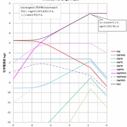 PbCl2の沈殿平衡については、(2024-08-11)において取り上げましたが、しかしこのときはイオン強度による影響を考慮しませんでした。今回は、PbCl2の溶解度に対するHCl濃度の影響について、イオン強度による影響も含めて解析します。 <<Pb-Cl系の関係式>> 様々なイオン ...