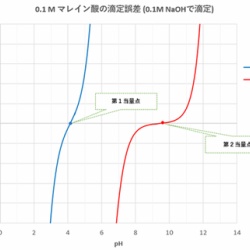 以前(2023-09-03)に続いて、今回はポリプロトン酸塩基の滴定における滴定誤差について考察します。一般に、滴定誤差は実験的に求めた終点が理論的な当量点に一致しないためにおこる誤差のことを言いますが、ここでは終点検出方法(たとえば、指示薬による目視法)に原理的に伴 ...
