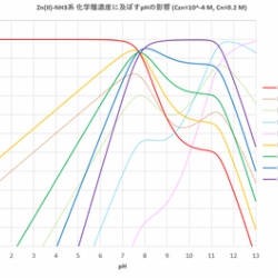 配位子がブレンステッド塩基の場合、金属イオンとともにプロトンとも反応するので錯生成平衡はpHの影響を受けます。ブレンステッド塩基の配位子としては、NH3, CN-, F-, EDTAなどがあります。またpHが高くなると金属イオンは水酸化物イオンとヒドロキソ錯体を作ります。この ...
