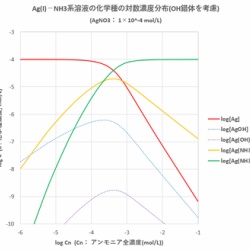 前回(2021/05/23)は、配位子の平衡濃度が既知の場合について、溶液中の化学種の平衡濃度を求めました。今回は配位子の平衡濃度が未知の場合について考えます。 <配位子の平衡濃度未知の場合の濃度計算> 一般に錯形成反応において、配位子の全濃度(式量濃度)は分かっても平 ...